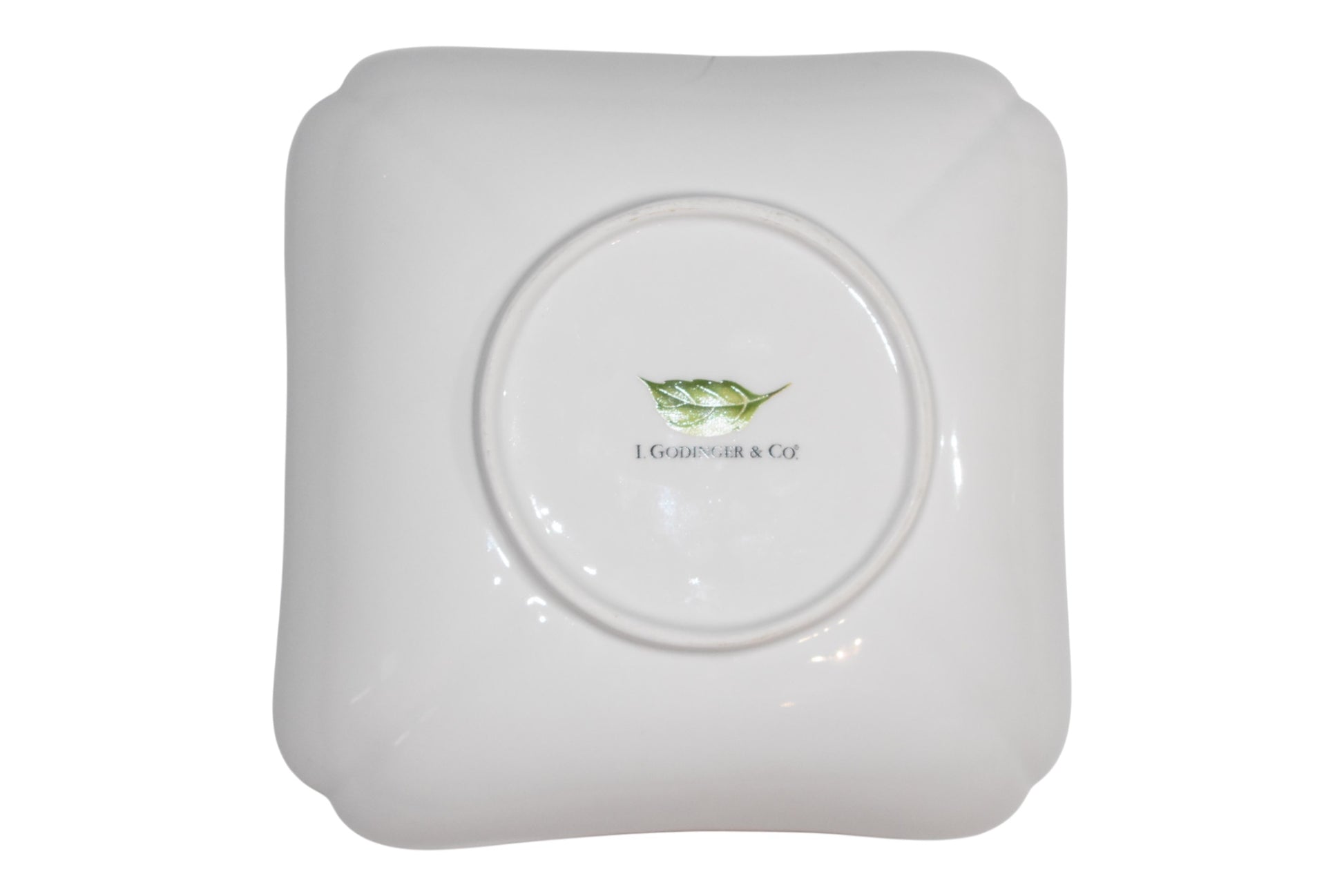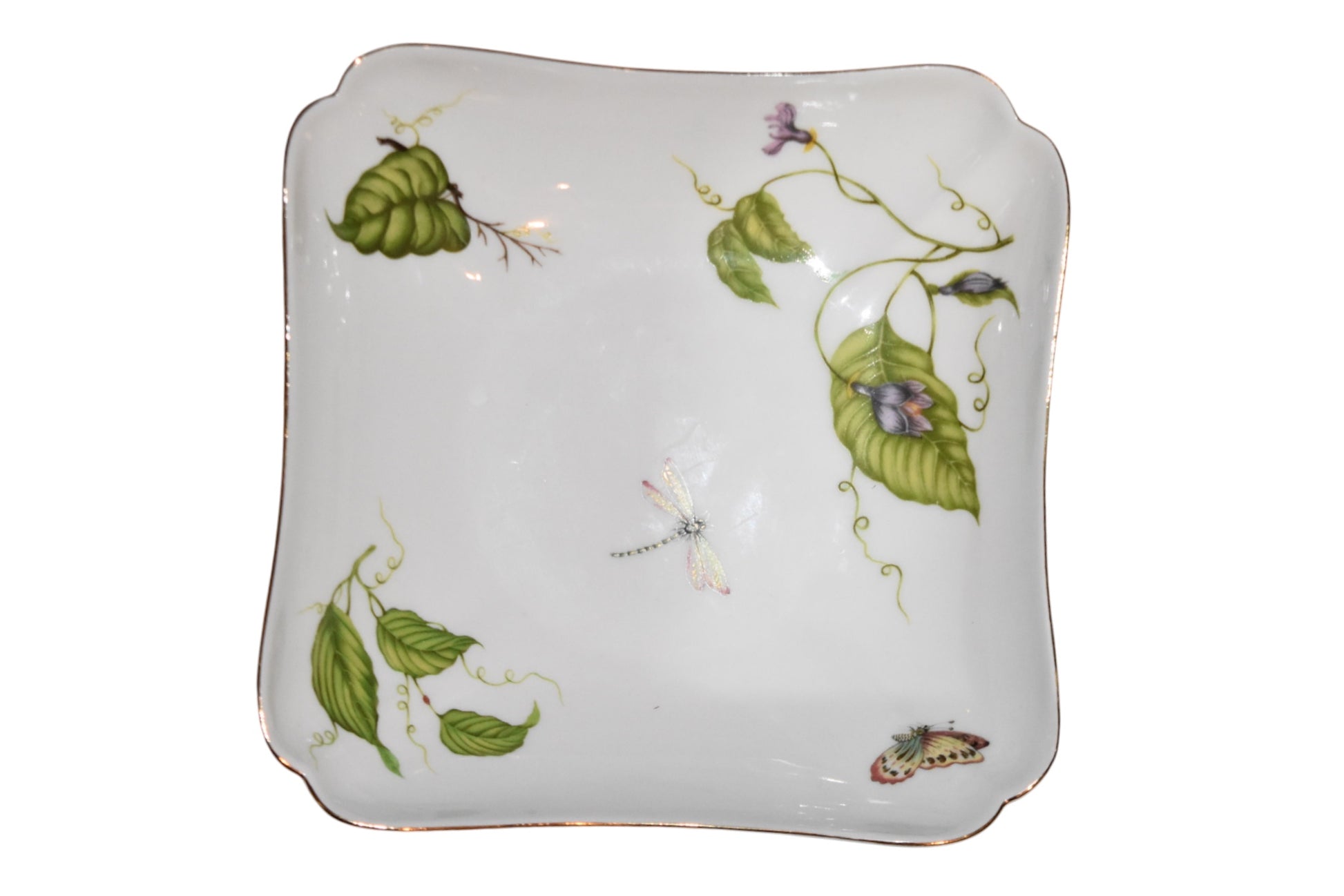 Delicate, feminine, and a touch whimsical—this square porcelain dish from I. Godinger & Co. features the Jardin pattern, a graceful design of fluttering butterflies, green leaves, and soft lavender blossoms accented with a subtle gold rim.