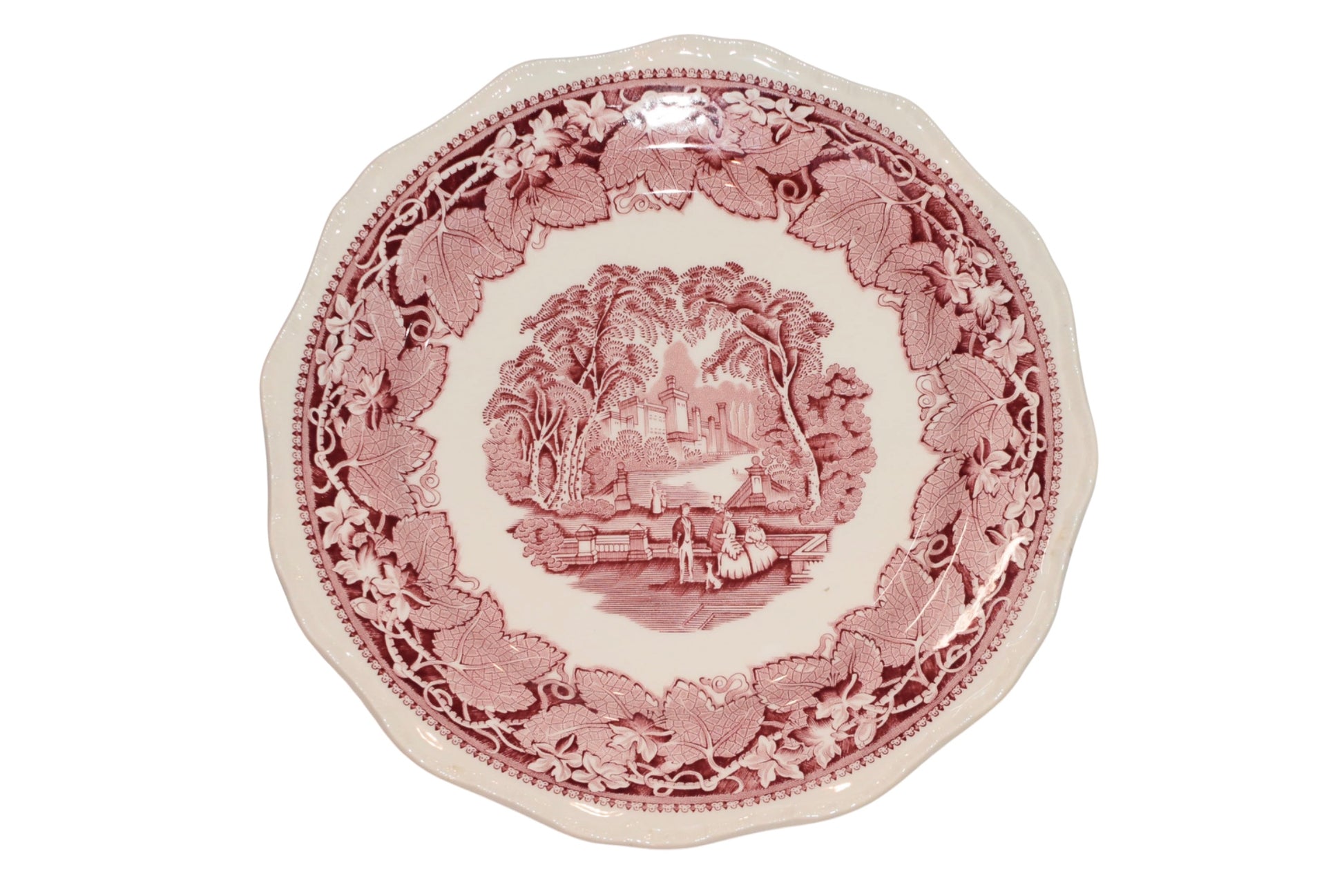 Bring classic English charm to your table with this matched set of 5 Mason’s “Vista” Red dinner plates. The pastoral scene and floral border, printed in rich cranberry red on creamy ironstone, make these plates perfect for everyday elegance and holiday entertaining. They layer beautifully with white ironstone, blue and white china, crystal, and silver.