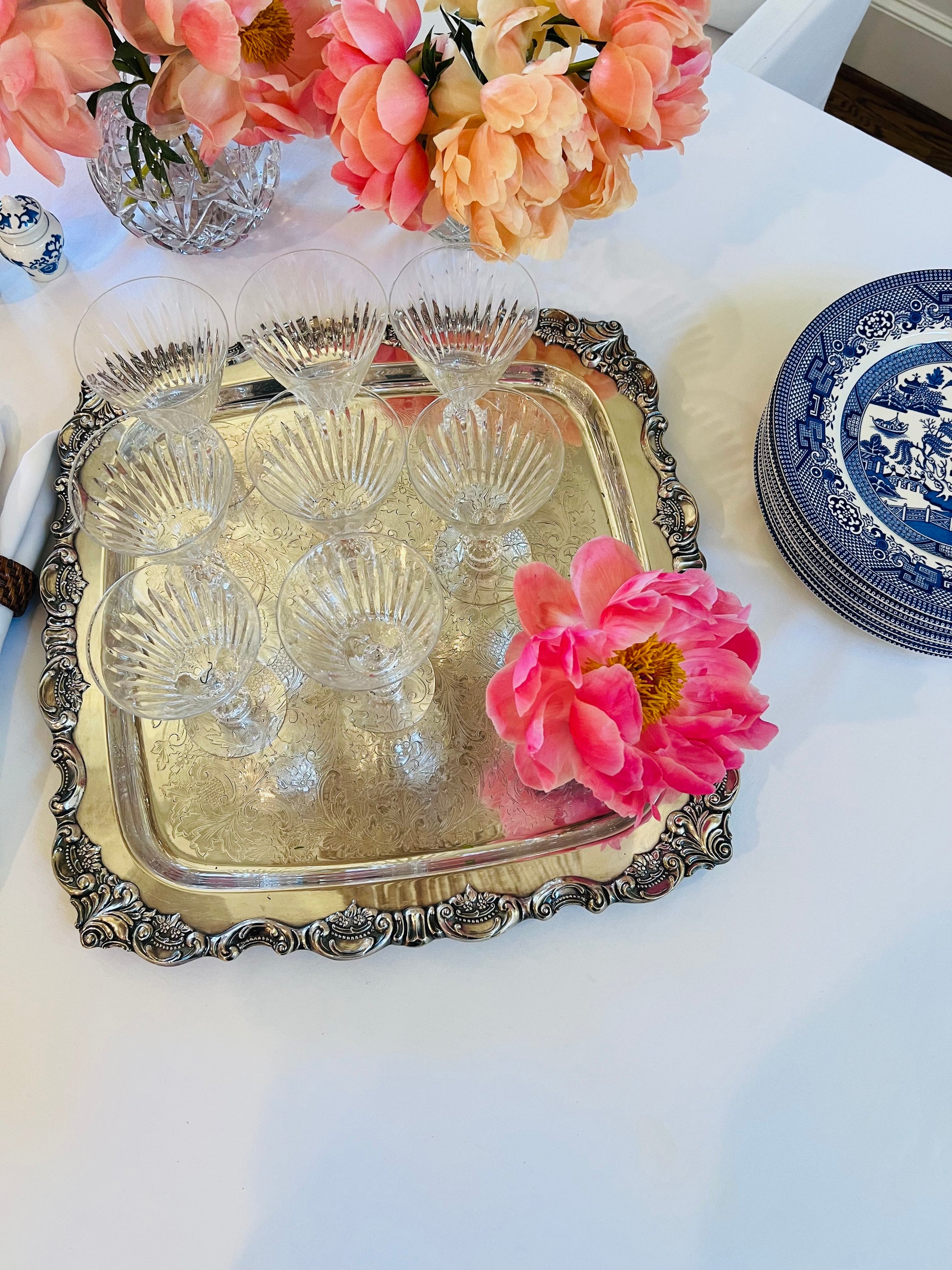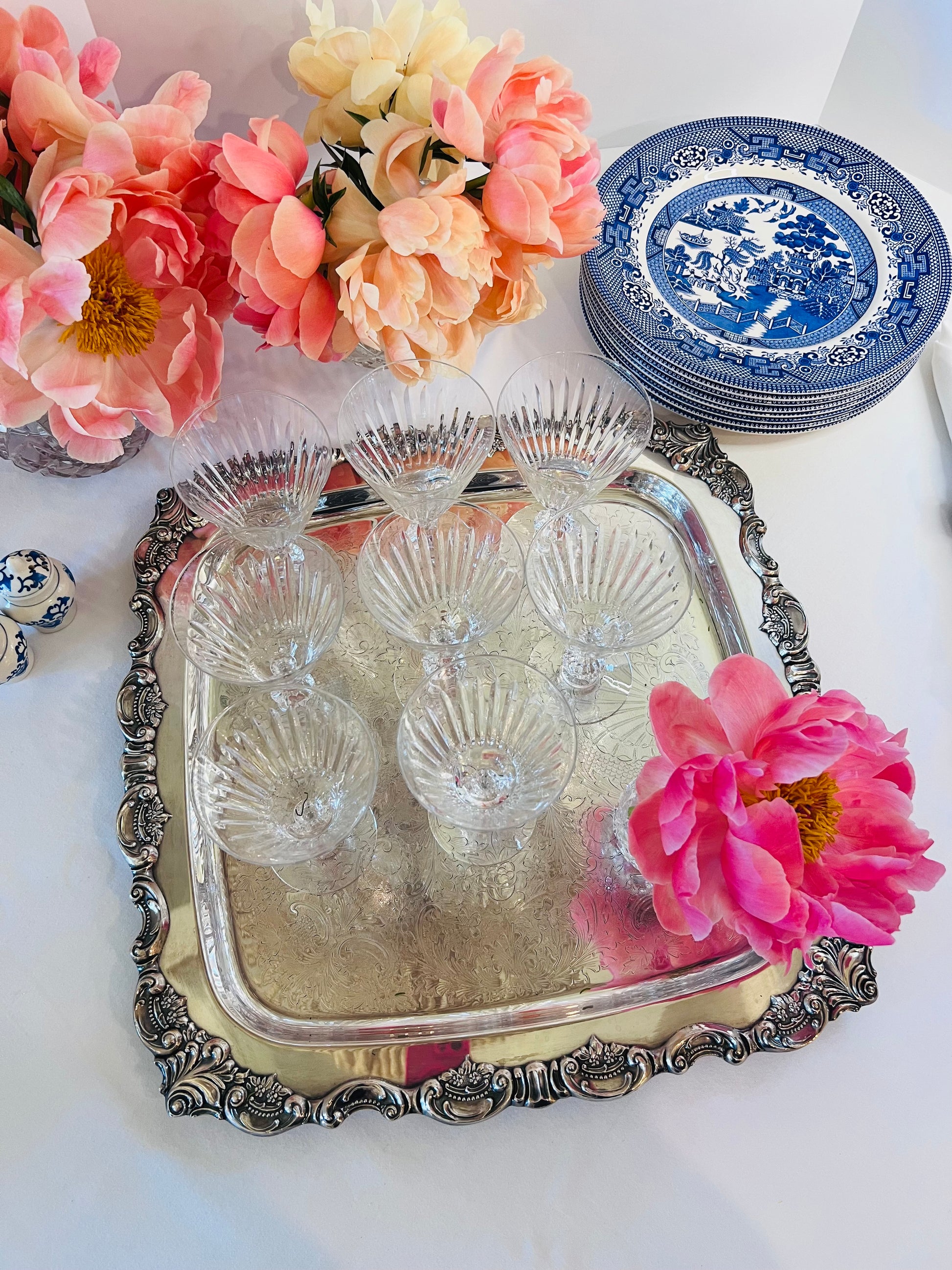 Displaying single roses, petite floral arrangements, or layering with clear and colored crystal for an elegant, collected look.